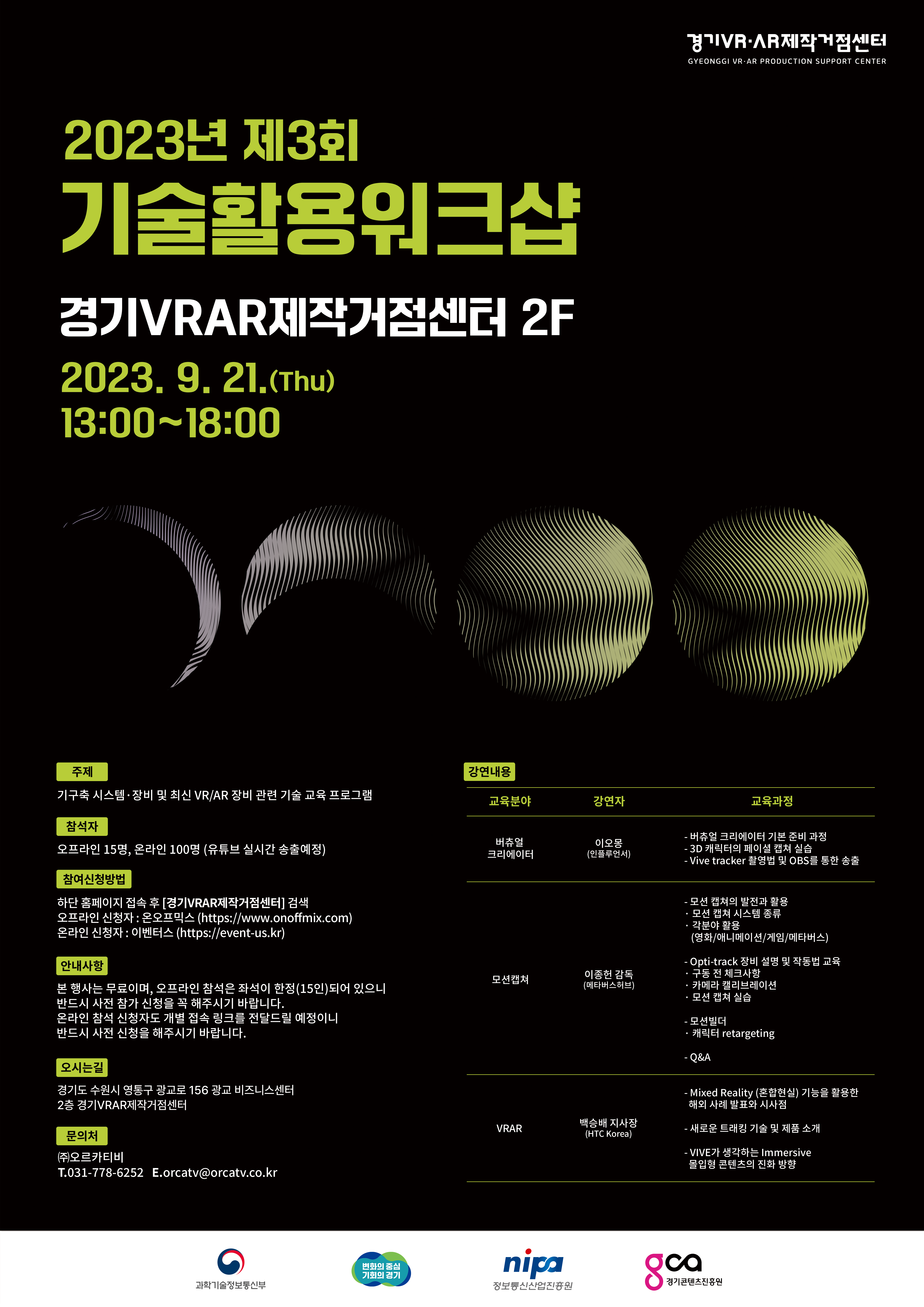 ▶ 장소 : 경기도 수원시 영통구 광교로 2층 경기VRAR제작거점센터