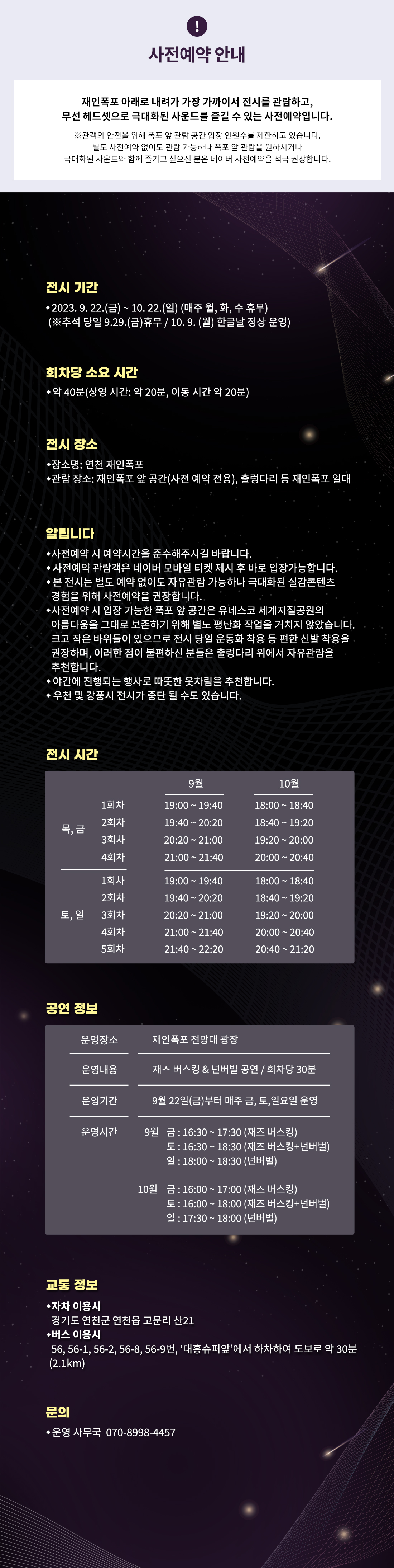 행사 [오르:빛 재인폭포] 2023 연천 재인폭포 야외 미디어파사드 전시(9.22~10.22) *사전예약open