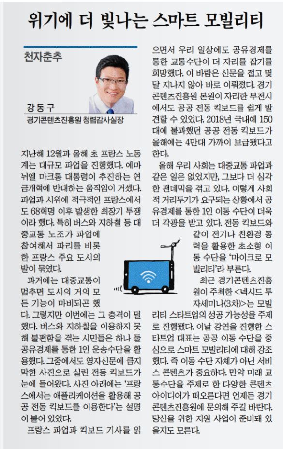 콘텐츠산업 / 기관 [천자춘추] 위기에 더 빛나는 스마트 모빌리티