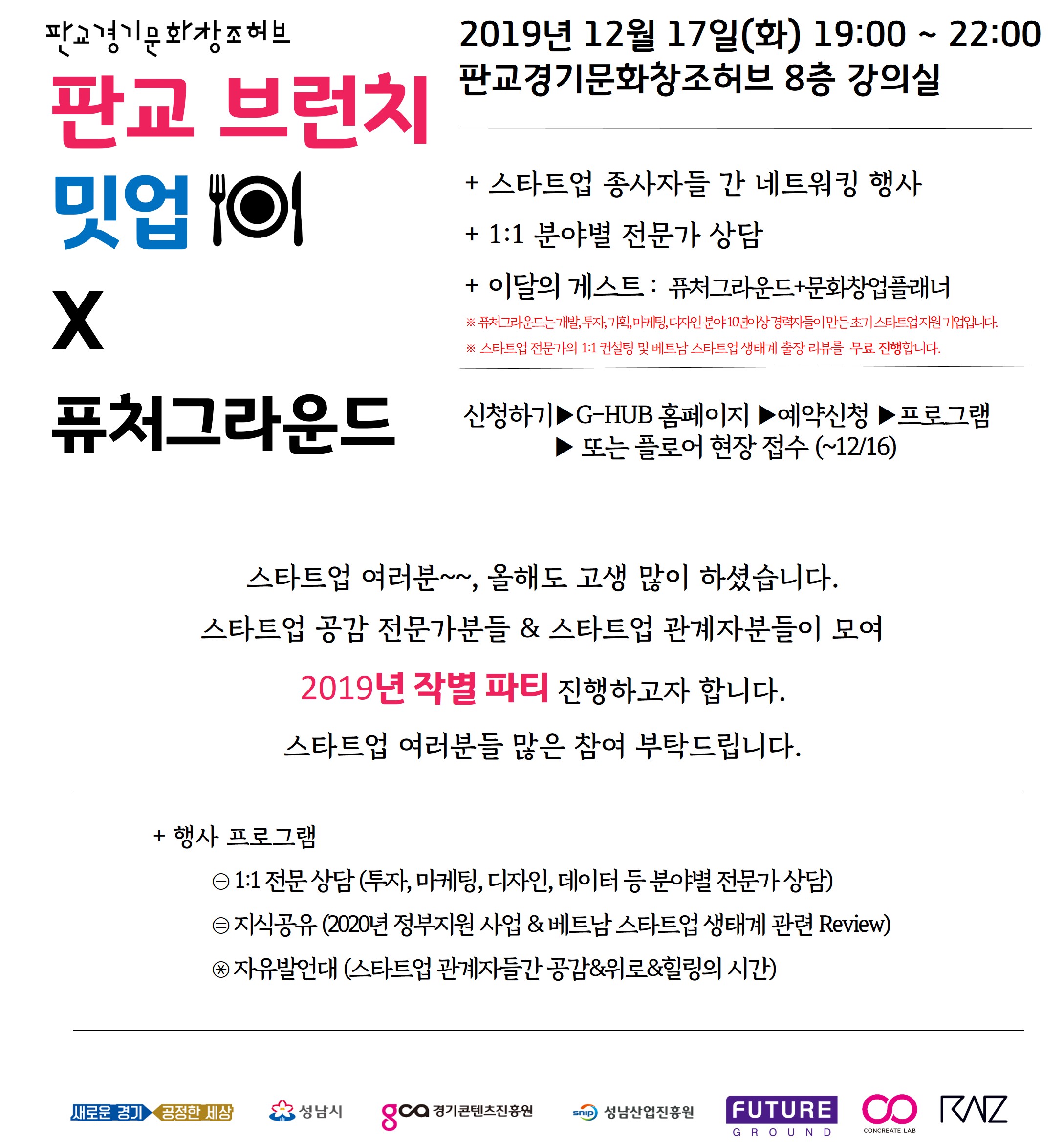 - 북부 경기문화창조허브 스타트업 입주사 10기 모집(~2020.1.21.) 자세히 보기 2019.1220