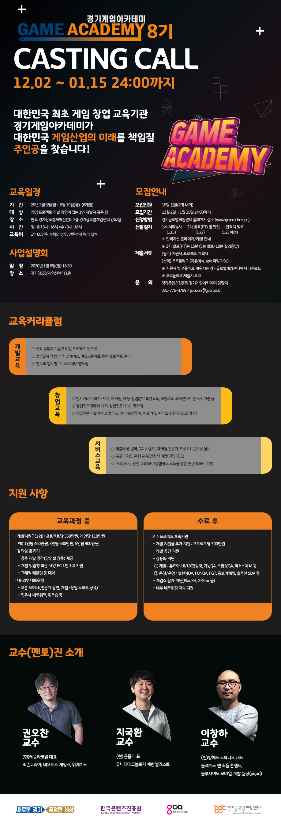 - [판교] 2020년 상반기 경기글로벌게임센터 신규 입주기업 모집 자세히 보기 2019.1203